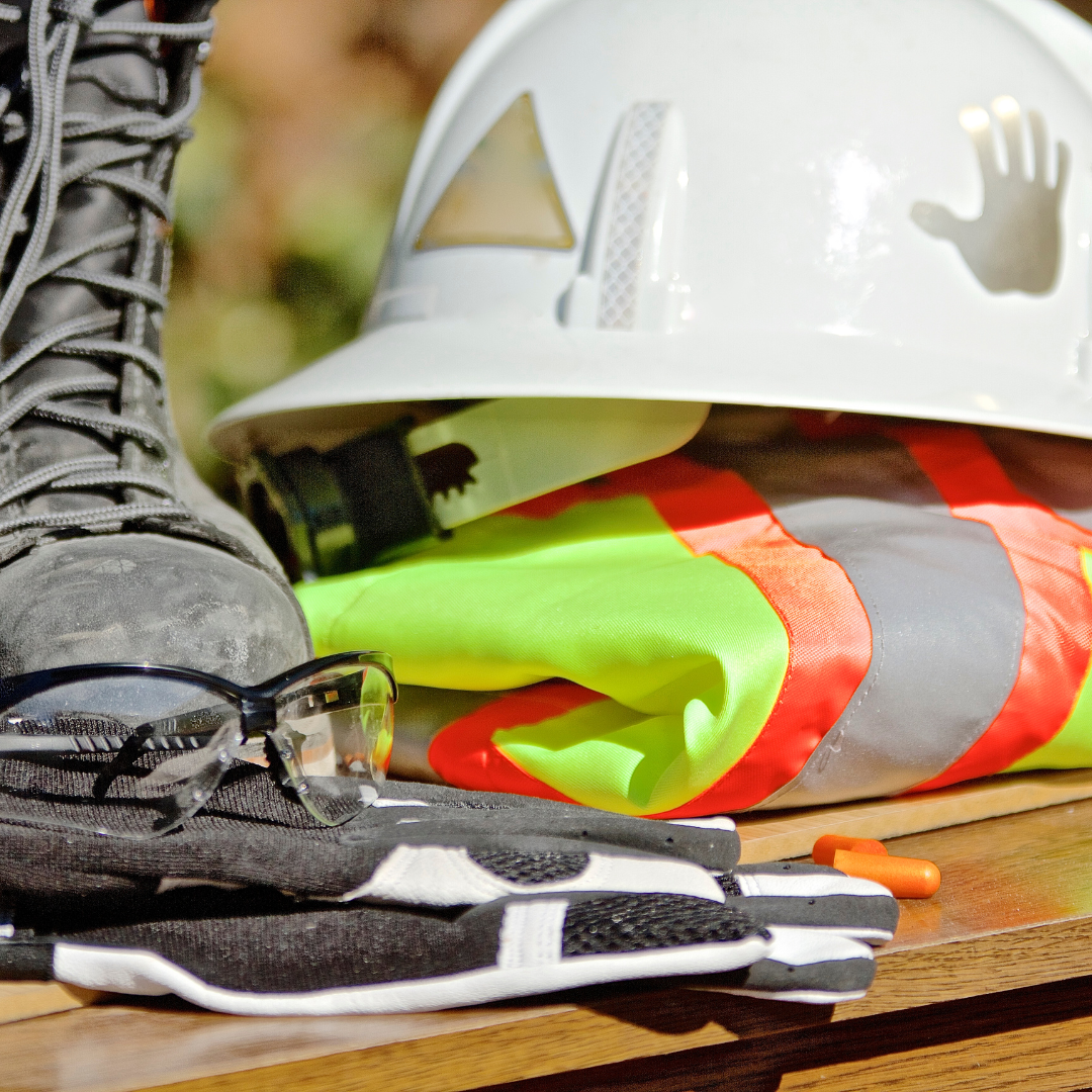 Lentes de seguridad, guantes de trabajo, chaleco reflejante, botas de seguridad, mascarillas, etc.